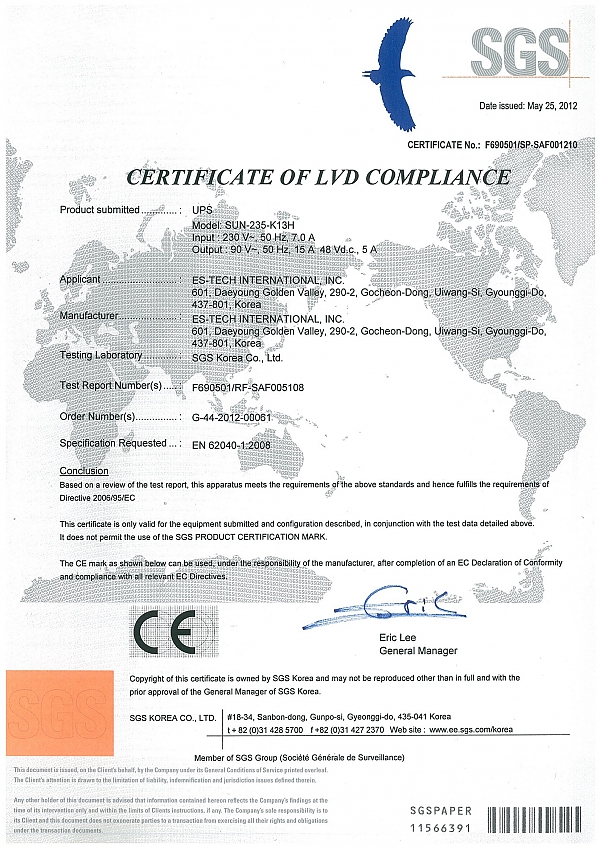 SGS Certificate Of LVD Compliance