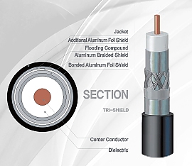 20 AWG Copper clad steel center conductor, gas foamed polyethylene